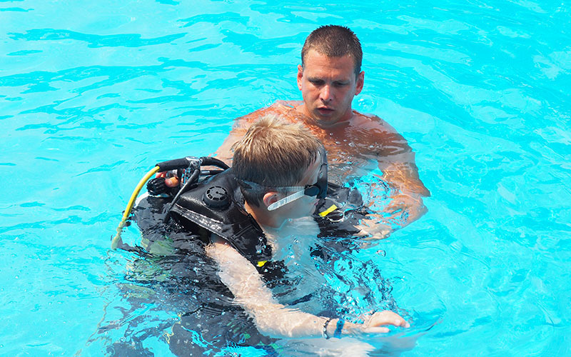 Il diving center offre corsi PADI a tutti i livelli, compresi i corsi EFR fino al livello di istruttore.