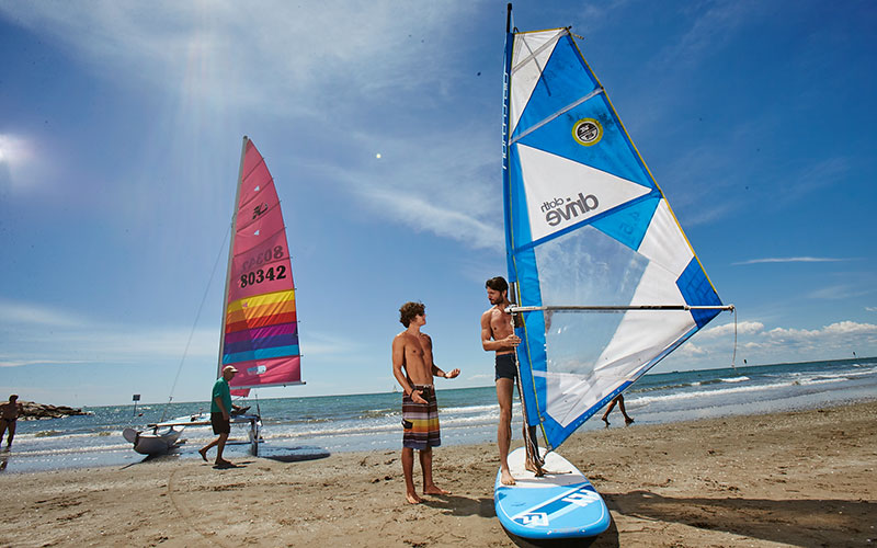 Alla scuola surf “Little Maui” del Camping Village Dei Fiori, gestita dal team della famiglia Kainz, potete frequentare corsi di windsurf a tutti i livelli, divertirvi con il catamarano, lo Stand up paddle, oppure rilassarvi con il Sup Yoga in acqua. Per gli esperti di queste discipline, è inoltre possibile noleggiare l’attrezzatura.