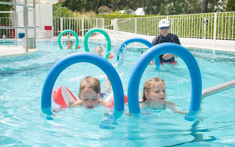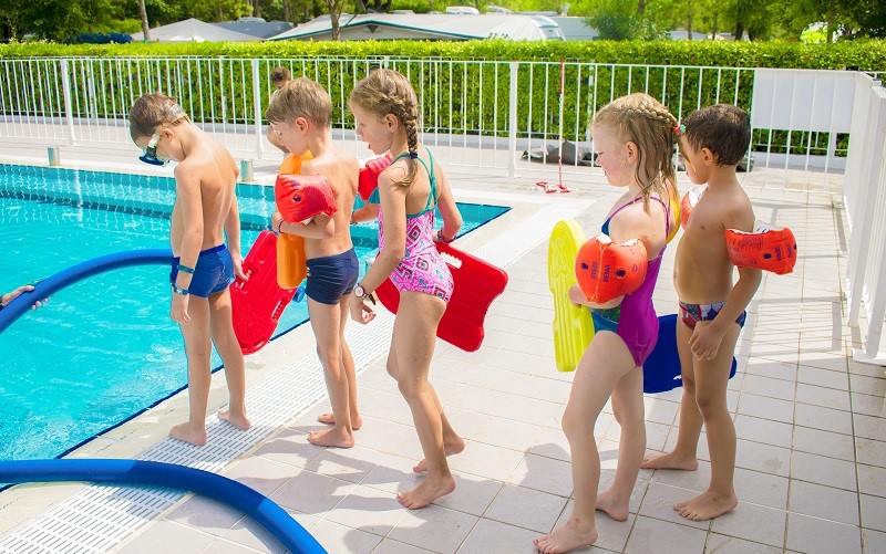Rana, dorso, delfino, stile libero. La scuola nuoto del Camping Village Dei Fiori è attiva da quasi trent’anni e molti ospiti che oggi iscrivono i loro figli ai corsi hanno imparato qui a conoscere l’acqua grazie al mitico maestro Roman. Alla fine di ogni corso di nuoto, i partecipanti vengono premiati con il “delfino di vetro”, simbolo della scuola che attesta il livello raggiunto.
