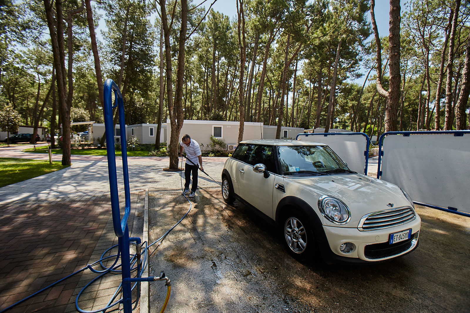 Il Villaggio dispone inoltre di un’area dedicata al rifornimento e allo scarico camper, di due wc chimici per caravan, di un autolavaggio self-service gratuito con pompa e aspiratore, di una stazione di ricarica per veicoli elettrici e di un’area di deposito per i natanti.