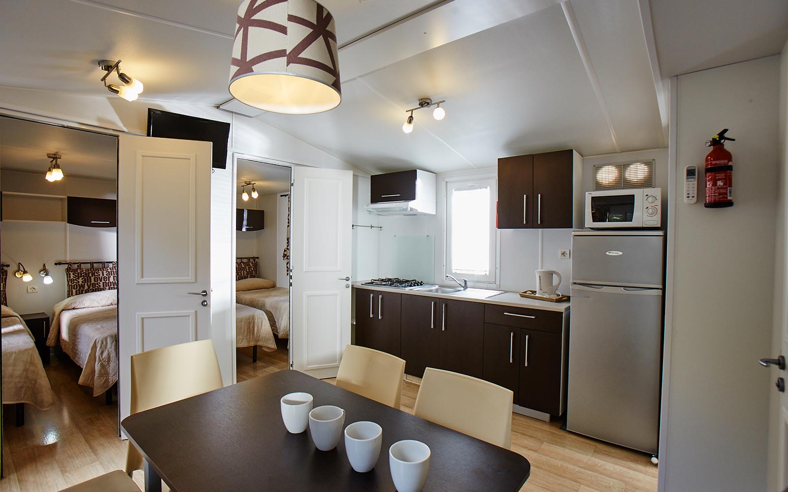 Pensati per le famiglie numerose o per gruppi di amici, gli Chalet Sole Six Beds dispongono di due camere da letto doppie oltre alla camera matrimoniale. La zona living è quella tipica degli Chalet Sole, così come l’area esterna, caratterizzata da un’ampia terrazza in legno affacciata sul verde.